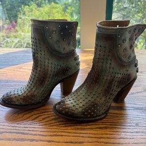 Corral 8 Women's Heeled Leather Boots Turquoise Brown Textured Boho Chic