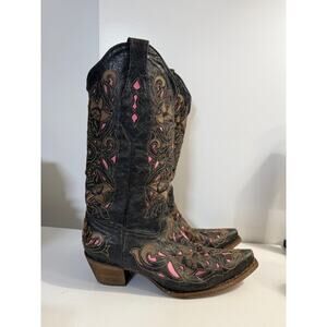 Corral Black Pink Gold Overlay Stitch Western Cowboy Boots Women's 9.5 M