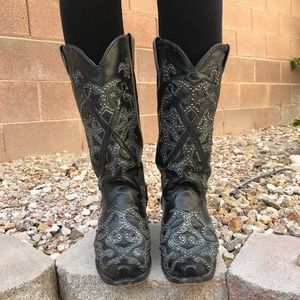 Corral Black Western Boots – Size 10 Genuine Leather – Studs + Sword Patch