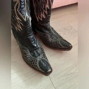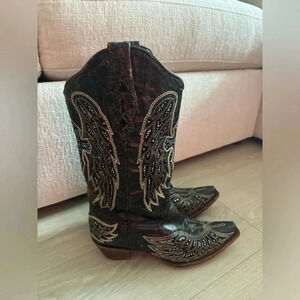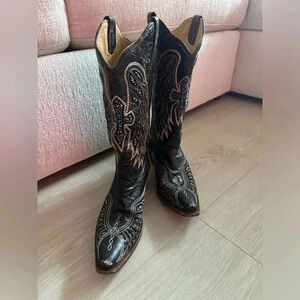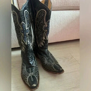 Corral Boots A2651 Black-Bone Wing & Cross Crystals Inlay