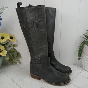 Corral Charcoal Leather Women’s Riding Boots with Straps 6.5 Distressed Low Heel