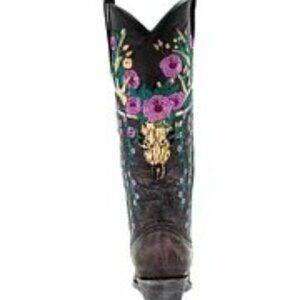 These gorgeous tall boots feature premium leather construction with deer skull overlays and a beautiful floral embroidered design that trails down the antlers. Floral embroidery at the foot completes the look. These knee-high 15" leather boots feature a unique embroidered deer skull design on a brown background, giving them a distinctive Western style. With a 2" cowboy heel, these size 10 pull-on boots have a medium calf width and a snip toe shape. Made in Mexico, these stylish boots are perfect for those who appreciate a blend of traditional Western flair and modern design elements in their footwear. Crafted with high-quality leather materials, these boots are a standout addition to any wardrobe, when it comes to blending feminine essence with western style, no one does it better than Corral. These boots were gently worn without any signs of damage please review all my pictures .