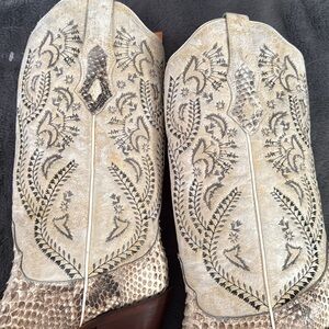Elegant Corral snip toe boots with detailed embroidery and authentic python on the vamp.
