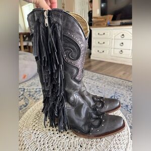 Corral Vinatge Women's KARLA Gray Black Snip Toe Fringe Cowboy Western