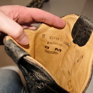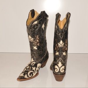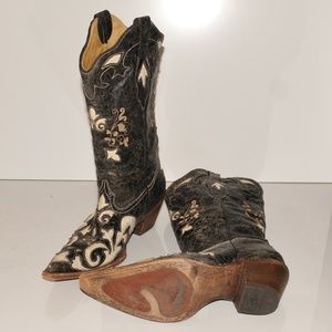 Corral Vintage, Snip Toe, Black Distressed Leather, Off White Lizard Inlay