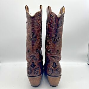 Corral Vintage Cowboy Boots Womens 6.5 Brown Sequin Inlay Embroidered Western