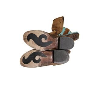 Distressed leather Corral Vintage ankle cowboy boots, made in Mexico, turquoise lining, very good condition, some wear on soles (visible in pictures) size 7M.