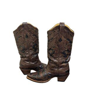 Corral Western Leather Boots Brown Black Overlay Size 8