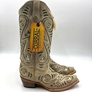 Corral Women's Bone Inlay & Embroidery & Studs Boots Size 8.5 M