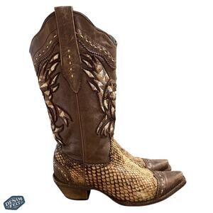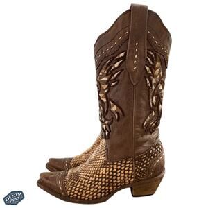 Corral Women’s Brown/Tan Embroidered Exotic Print Western/Cowboy Boots
