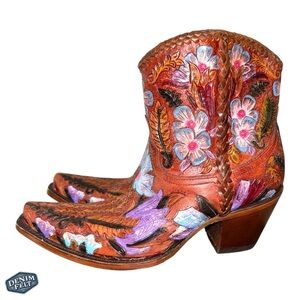 Corral Women’s Multi Color Hand Painted Honey Tooled Ankle Cowboy Western Boots