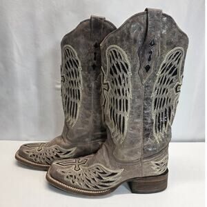 Corral Women's Sequin Wings & Cross Leather Western Cowboy Boots Square Toe 8W
