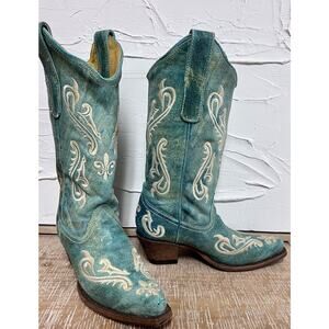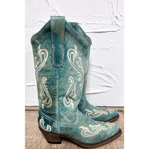 Corral Womens Size 6.5 M Turquoise & White Leather Western Coastal Cowgirl Boots