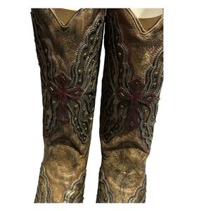 Corral Women's Weathered LD Bronze/Gold Red Wing & Cross Studs 9M
