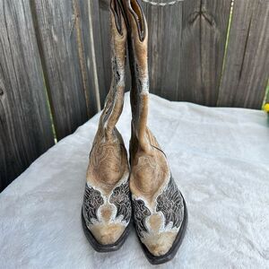 Corral Women's Western Boots Size 6 Brown Snip Toe Embroidered Mid-Calf