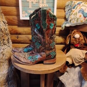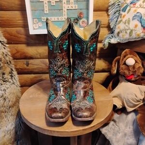 Corral Women's Whiskey/Turquoise Three Cross Vamp and Tube Snip Toe Cowgirl Boot