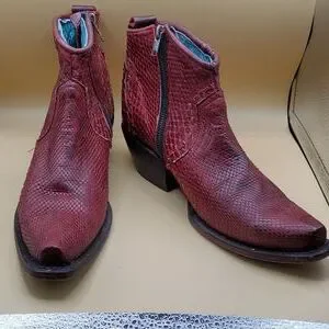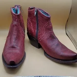 CORAL RED PYTHON WITH ZIPPER BOOTIE . 8.5 . WORM ONCE .