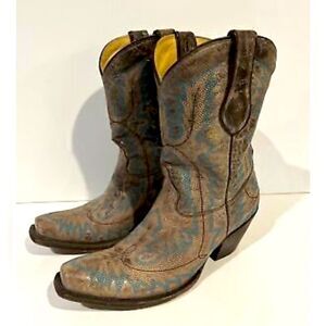 Corral Women's Cowgirl US 7.5 M Brown and Teal Western Boots, square toe tip