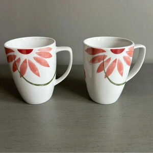 Correlle Coordinates Pretty Pink 12 oz Porcelain Coffee Mugs Set of 2 Floral White Discontinued