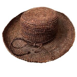 This listing is for a Corroboree Women's Straw Sun Hat. Brown. Braided band around the crown with a bow. One Size. Made in Australia.