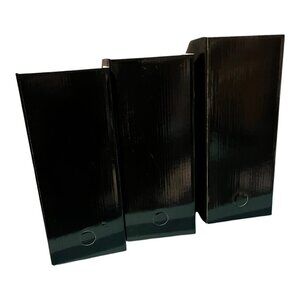 Organized and functional, this corrugated cardboard file rack is a sleek black magazine holder designed to complement professional spaces while maximizing storage.
