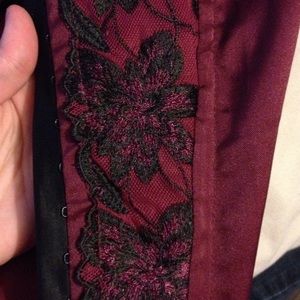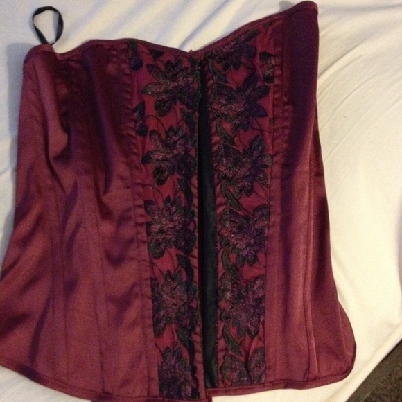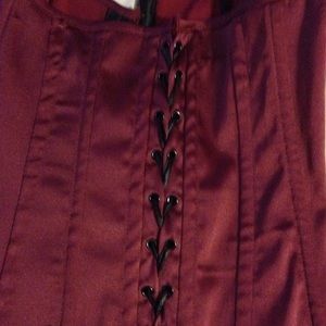 Very comfortable maroon and black corset, worn for a shoot. Great going out top.