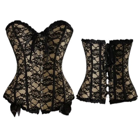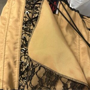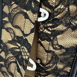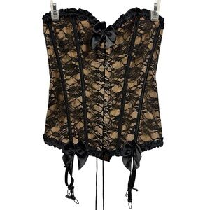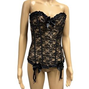 Corset Black Lace Overlay Bustier Top Sexy Steel Boned Body Shaper Womens Medium