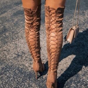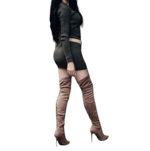 Corset Lace Thigh High Tall Stiletto Over The Knee Boots