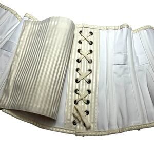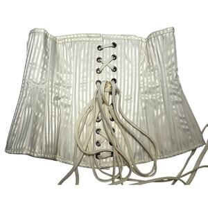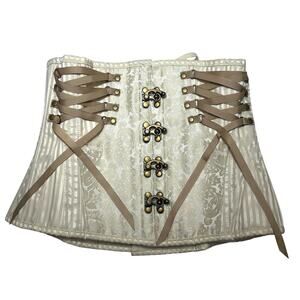 Corset Story Underbust Brocade Brass Hooks Steampunk Corset Ivory Cream 28 NWOT