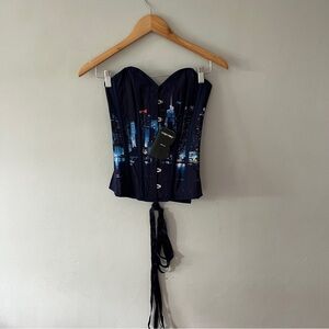 Corset Story Instant Shape Classic Over Bust Corset in City Skyline Navy NWT