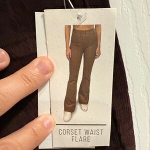 Stylish corset waist flare pants in a rich brown color. Perfect for a chic look.