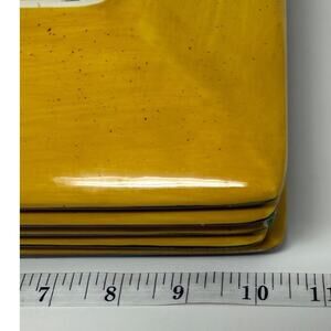 Elevate your dining experience with the Corsica La Province Square Dinner Plates. Each plate in this six-piece set showcases a vibrant yellow hue and glossy finish, bringing a touch of Art Moderne style to your table. The square shape measures 10 1/4 inches in width, perfect for a variety of culinary presentations. Crafted from high-quality earthenware, these plates are designed for both durability and elegance. Whether you're hosting a dinner party or enjoying a cozy meal with family, this set promises to serve your dishes with sophistication and charm. The style and color of these plates are sure to complement any decor, making them a versatile addition to your home. One plate has minor chip as displayed in measurement picture.