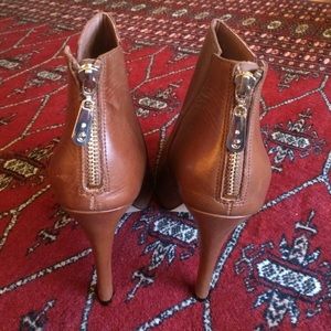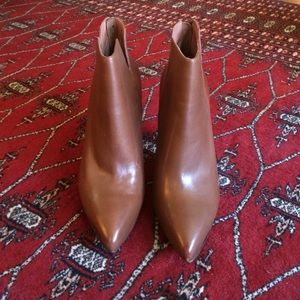 Super cute booties perfect for the fall/winter! Great daytime wear as they are super comfortable or would make a nice holiday party heel. Cute paired with boyfriend jeans or skinny jeans. Would also work with a skirt or little black dress!! I got these a few years ago and just never ended up wearing them, so figure I should pass them on! Size=7.5 M. Fit true to size. Color= luggage vintage calf. Heel height=3 inch. Worn only once for a few hours.