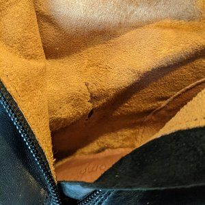 Soft suede lining. Small stains inside the lining and a bit of rubbing on the toe. Please see pictures.
