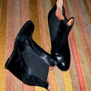 Corso Como Black stacked wedge ankle booties