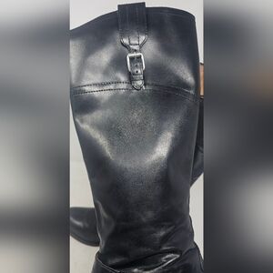 Corso Como Classic Black Leather Knee High Buckled Riding Boots Size 7.5M