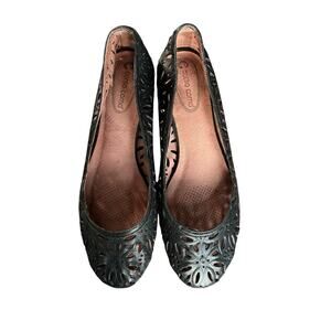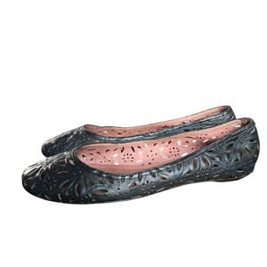 Corso Como Floral Laser Cut Black Leather Skimmer Flats Size 8 Made In Brazil