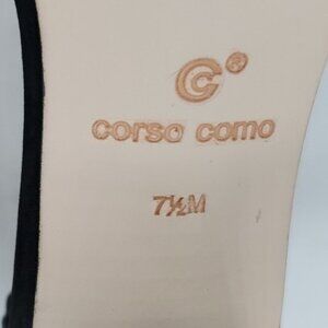 Up for Consideration is a pair of Women's Corso Como Louisa Black Suede Leather Ankle Strap Sandal Heel Work Party Core in Size 7.5 M (US) 38 (EUR). They are Gently Pre-Loved and may show Light Wear or Scuffs from Normal Use, Storage or Shipping. Appear to have been Worn Minimally ~ REFER TO ALL PICS. MAY NEED TO ZOOM IN ON PICS. * No Box or Cloth Shoe Bag Available. Pictures are of Acual Item and also part of Description.