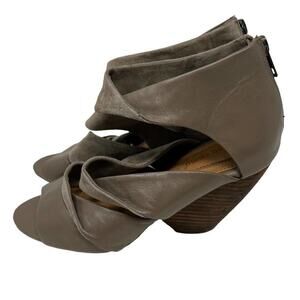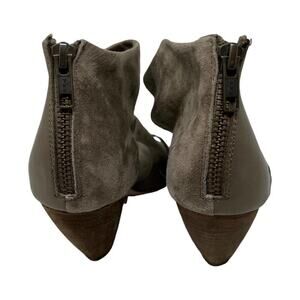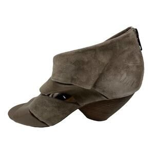 Corso Como Taupe Carrington Demi Wedge Suede Leather Twist Peep Toe Shootie Sandal