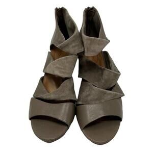 Corso Como Size 6.5 Carrington Demi Wedge Sandals Suede Leather Twist Peep Toe