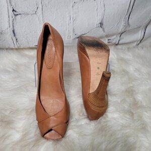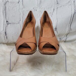 Corso Como Womens Sz 9.5 Tan Peep Toe Slip On Pumps Leather Heels Classic Office
