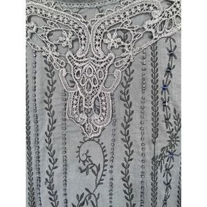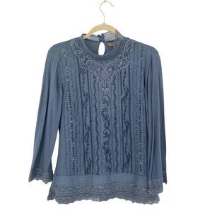 Cortefiel Woman Blue Lace Embroidered Embellished Long Sleeve Top