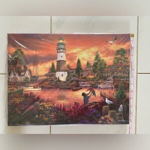 Beautiful canvas wall art featuring a lighthouse scene. Vibrant colors create a stunning visual. Perfect for home decor. By Chuck Pinson , Brand New