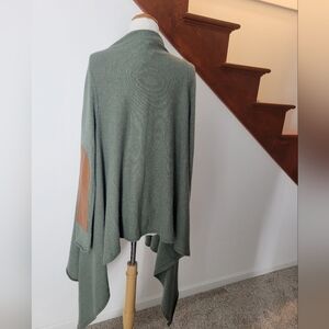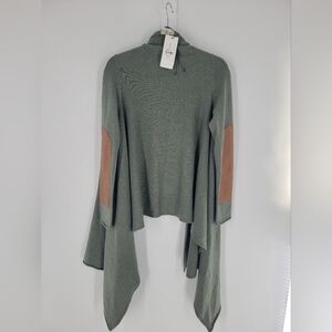 Cortland Park NWT Green Wrap Open Cardigan With Saddle Elbow Patches Size M