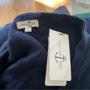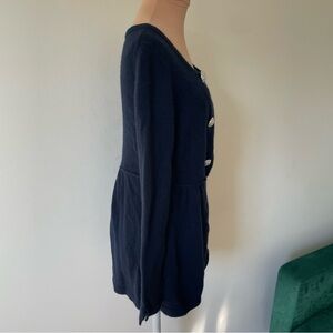 Cortland Park Navy Blue Cashmere Crystal Button Detail Pea Coat Sweater NWT Sz S