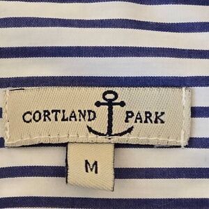 Cortland Park Womens Striped 1/4 Button Long Sleeve Shirt Blue White Size Medium