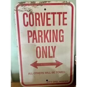 Embrace the spirit of American performance and exclusivity with the Corvette Parking Only sign, a robust metal plaque designed to assert your space with authority. Measuring at 12"x18", this sign is a bold statement piece, ideal for collectors and enthusiasts alike who want to reserve their parking spots with a touch of class. Crafted for durability and longevity, the sign features a striking design that's both eye-catching and easy to understand. It's an impeccable addition to any setting where you desire to ensure your vehicle's status as the star of the show, without the need for constant vigilance.