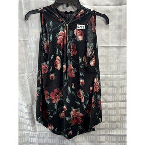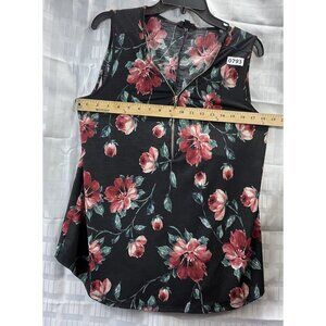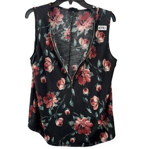 Corvia Womens Blouse Black Red Floral Print Cap Sleeve Size L