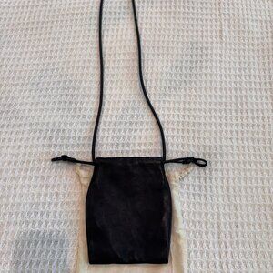 This minimalist crossbody pouch is a shrunken-down take on the new COS Cavatelli bag. Offered in an enduring black hue, it's meticulously crafted from buttery-soft leather using a chrome-free tanning process. Shaped with knotted drawstrings at either side that create a softly gathered profile, and completed with a thin tubular leather strap and an interior fully lined in black cotton, customised with a leather COS logo patch. Perfectly sized to hold your phone, keys and cardholder. Incredibly easy to style, with a cool, effortlessly contemporary feel to it. Sold out in stores and online.