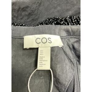 Cos Embellished Black Polyamide Racer-Neck Dress Size 4: a racer-neck silhouette and embellished with asymmetric beaded fringing, relaxed fit, zip closure, sleeveless, round neck.